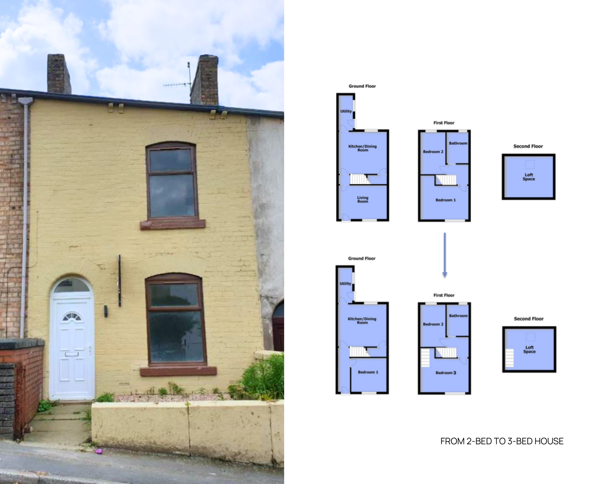 A tired two-bedroom terraced house became a three-bedroom mini-HMO for working professionals.